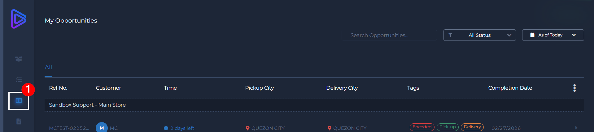 1. Click the My Opportunities icon on the sidebar.