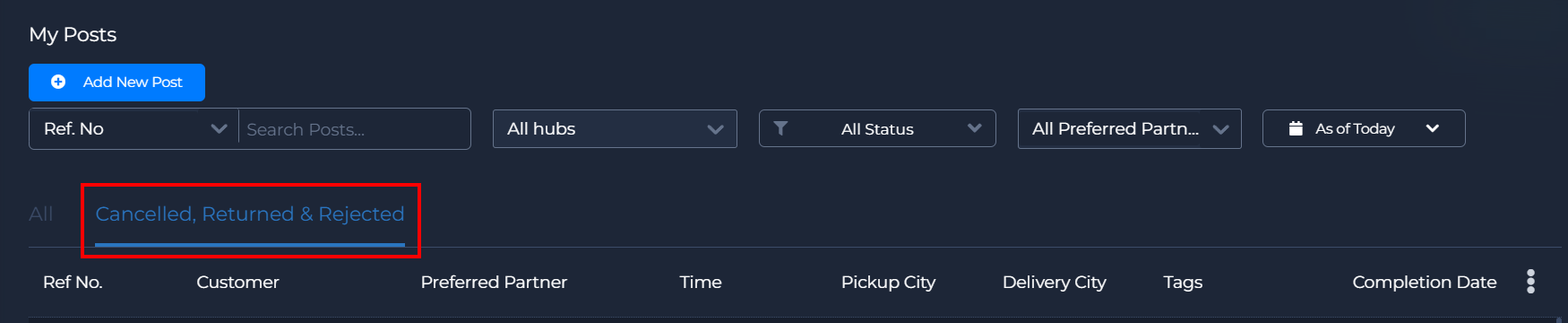 My Posts Overview Learn different actions you can do in the All and Cancelled, Returned & Rejected tab of the My Posts page in Deliveries PH. A PDF version of this guide is available below. "All" Tab Post Actions 1. Click a post in the All tab of the ...