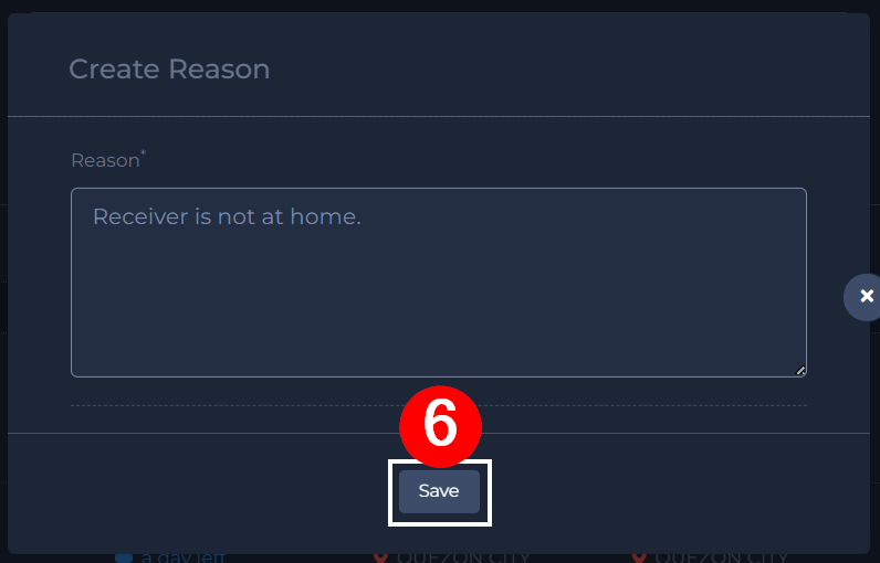 5. Enter the reason.