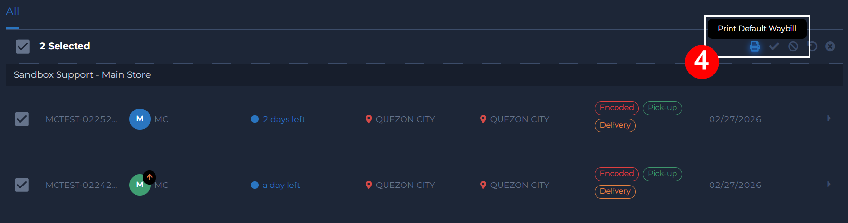 4. Click Print Default Waybill.